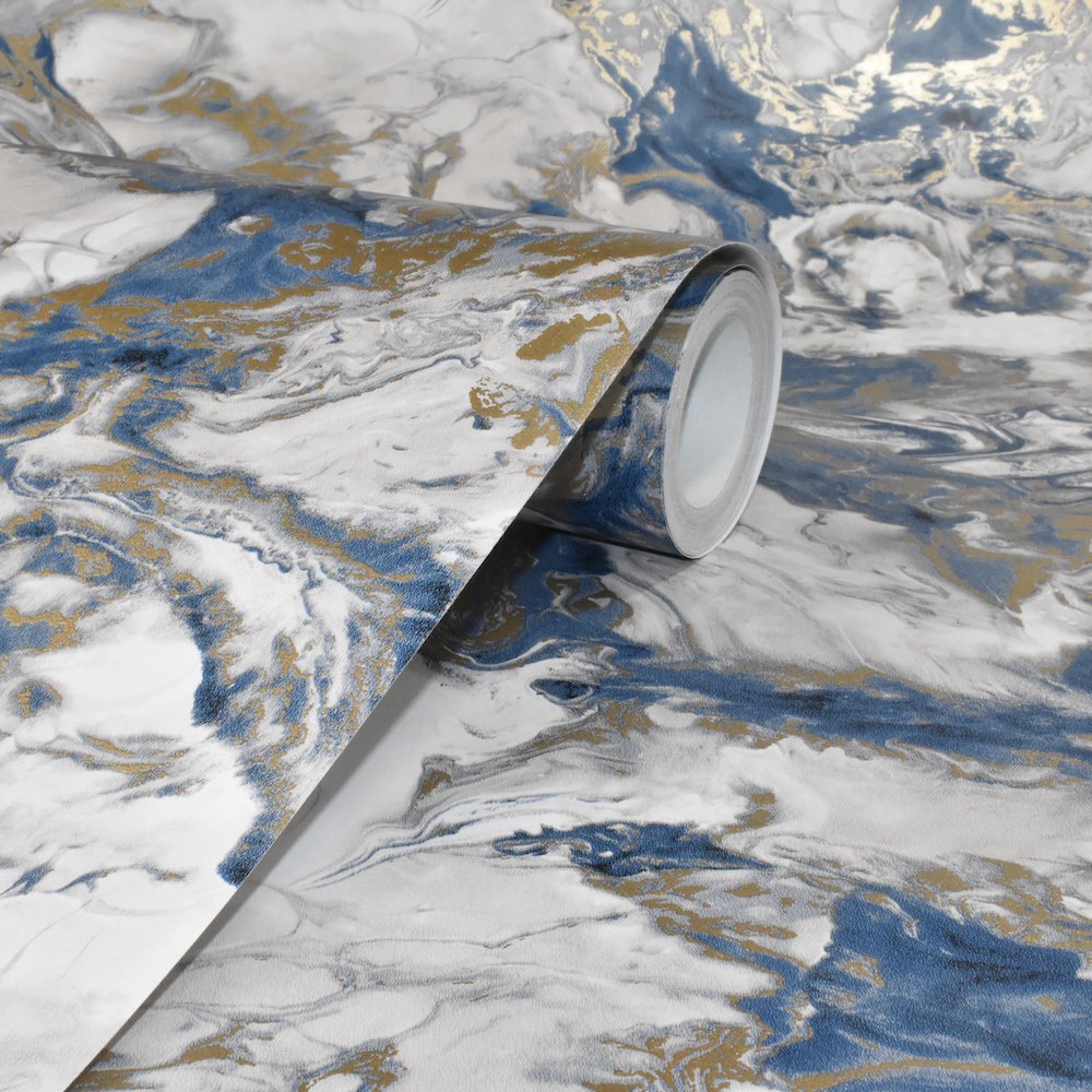 Navy Blue And Gold Marble Wallpaper